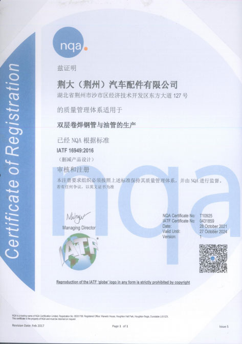 湖北省認(rèn)定環(huán)保型汽車油管研發(fā)中心