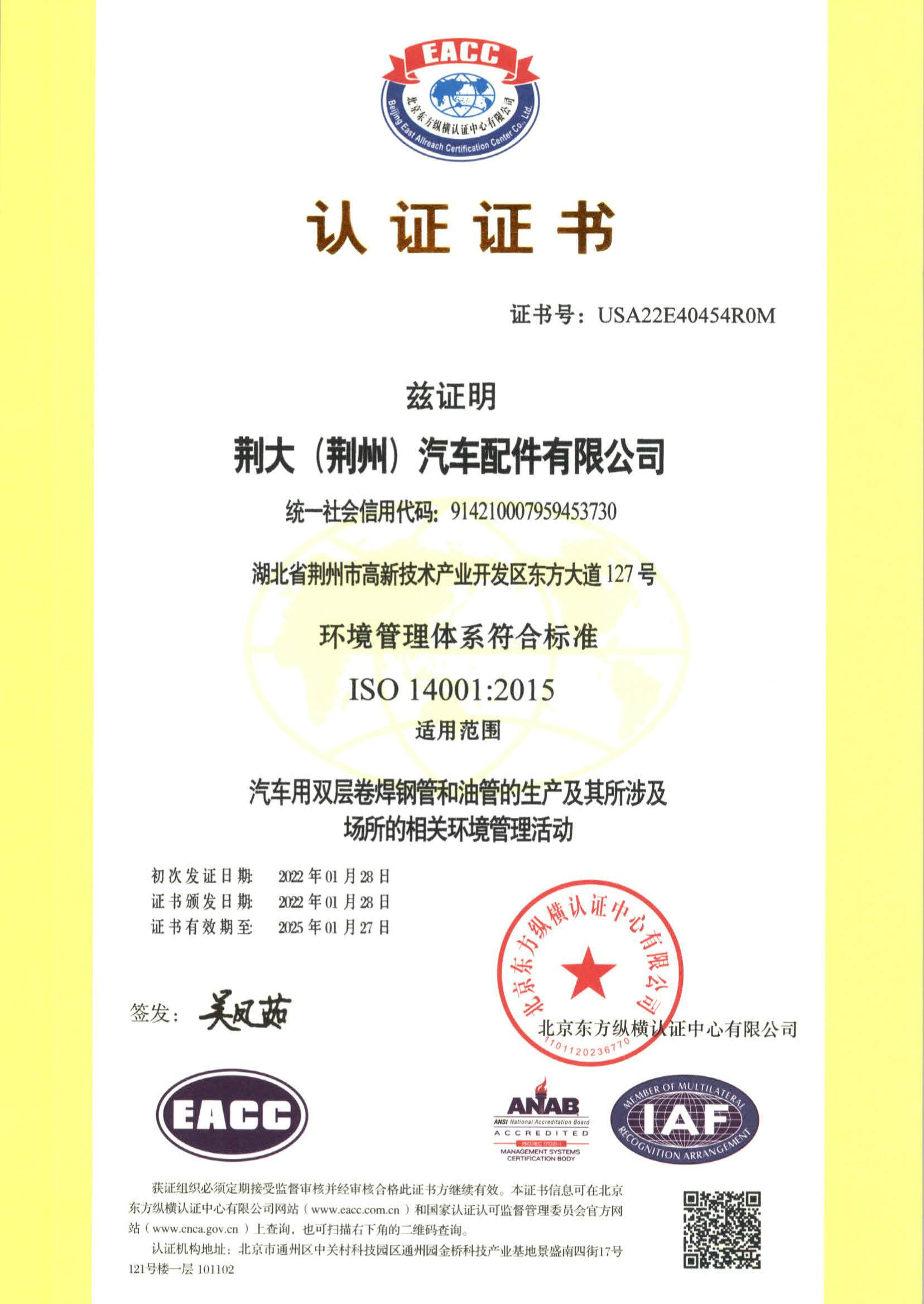 環(huán)境管理體系證書